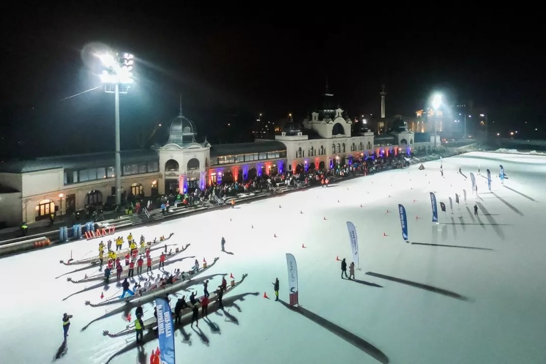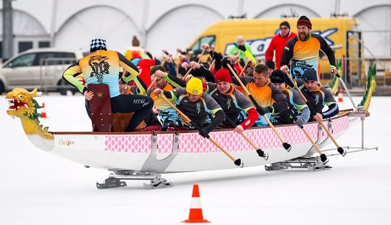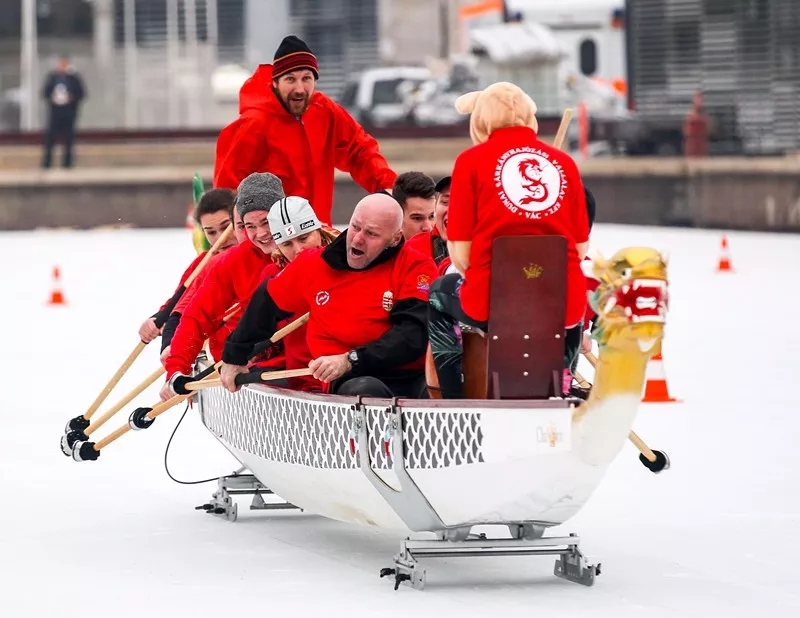 On February 16, 2016, in Budapest, dragon boat enthusiasts from around the world gathered to embrace ice dragon boat, a new dragon boat sport from the East.