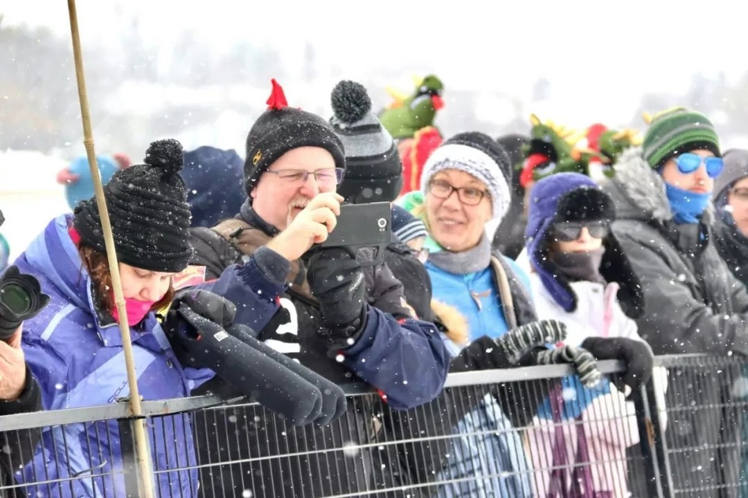 This ice dragon boat event attracted 100,000 spectators to the venue. Smiles and cheers in the icy snow, as well as spectators raising their phones