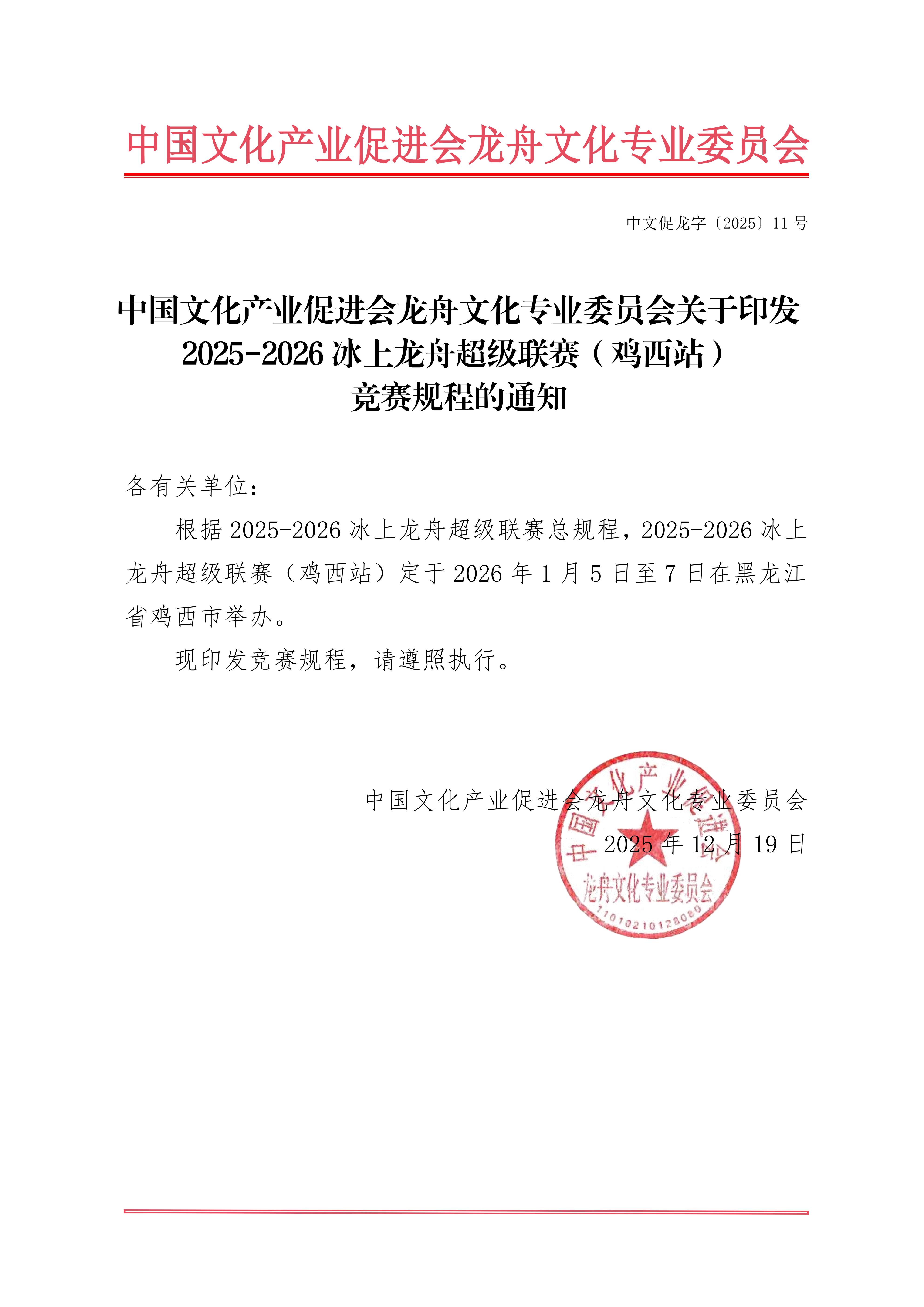 2025-2026冰上龙舟超级联赛(鸡西站)竞赛规程的通知