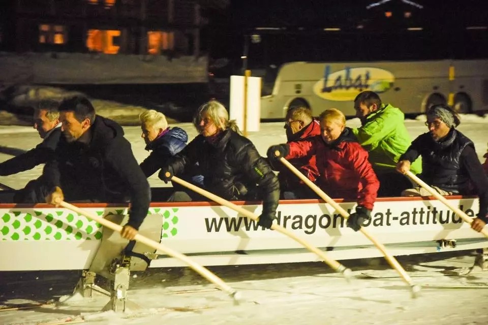 dragon culture through the competition. The sounds of ice paddles hitting the ice, chanting, and laughter merged into one.